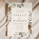 Celebre seu dia especial com estes elegantes convites de casamento floral de inverno. Os detalhes do seu casamento são exibidos em letras verdes profundas, enquadrados por um arranjo inspirado em boho de flores de inverno e folhagem em um fundo de marfim. A design apresenta rosa, rosas claro, marfim e flores amarelas de ouro sujentas, complementadas por folhas de eucalipto e sotaques verdes da floresta ricos. Perfeito para casamentos no inverno, esta design romântica se emparelha maravilhosamente com peças coordenadoras da nossa coleção de casamento da Floral de inverno.