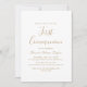 Este delicado convite à primeira comunhão de caligrafia dourada é perfeito para um evento religioso moderno. A design romântica minimalista apresenta uma magnífica e elegante tipografia amarela ouro champanhe num fundo branco com um aspecto simples e limpo.