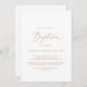 Esse delicado convite para o batismo da caligrafia dourada é perfeito para um batismo bebê moderno. A design romântica minimalista apresenta uma magnífica e elegante tipografia amarela ouro champanhe num fundo branco com um aspecto simples e limpo.