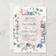 Aprecie amigos e família com este belo convite de casamento com delicadas flores de aquarela com verde. Design com flores e folhagem em uma bela mistura de azul empoeirado, pêssego, rosa-pincel, massa, cinza e matizes verdes. Detalhes de casamento sobre o quadro de cobertura floral semitransparente pálido. Detalhes da caligrafia escrita à mão. De volta com um tom azul empoeirado. Parte da nossa coleção "Blissful Floral" com uma variedade de produtos de coordenação disponíveis. O mesmo convite de design no quadrado também está disponível.