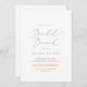 Este delicado convite para brunch de caligrafia em ouro é perfeito para um chá de casamento moderno. A design romântica minimalista apresenta uma magnífica e elegante tipografia amarela ouro champanhe num fundo branco com um aspecto simples e limpo.