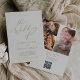 Este delicado convite de casamento por colagem de ouro e creme QR é perfeito para um casamento moderno. A design romântica minimalista apresenta uma magnífica e elegante tipografia amarela ouro champanhe num fundo de creme de marfim com um aspecto simples e limpo. Personalize seu convite com 3 fotos de noivado no verso. Inclua um código QR para seus convidados para verificar seu site de casamento ou para RSVP facilmente on-line.