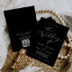 Este delicado convite de casamento preto negro de QR é perfeito para um casamento moderno. A design de moody apresenta uma magnífica e elegante tipografia branca sobre um fundo preto com um aspecto sofisticado. Salve o papel, incluindo um código QR para seu convidado para ver detalhes, RSVP ou ambos.