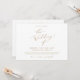 Este delicado evento de fim de semana de ouro, convite de casamento horizontal é perfeito para um casamento moderno. A design romântica minimalista apresenta uma magnífica e elegante tipografia amarela ouro champanhe num fundo branco com um aspecto simples e limpo. Salve o papel, incluindo a programação de fim de semana dos eventos na parte traseira do convite de casamento, em vez de em um cartão de cercado separado. Inclua um código QR para seus convidados para verificar seu site de casamento ou para RSVP facilmente on-line.
