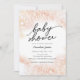 Convide seus convidados para o seu chá de fraldas com este convite para Chá de fraldas floral Delicado Peach com flores de aquarela e um fundo padronizado. Adequado para uma mãe esperando uma menina, ou mudar a cor de fundo para se adequar à sua festa. © Mini Moi Impressões