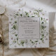 Celebre a noiva a ser! Este elegante convite de chá de casamento apresenta uma moldura de aquarela de verde e delicadas flores cor-de-rosa com uma vibração pintada à mão. Personalize com suas informações ou clique em "Clique para personalizar mais" para editar estilos de fonte, tamanho e cores.