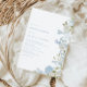 Celebre seu dia especial com nosso chá de panela encantador com um romântico e delicado design de borda floral de cor azul-d-água empoeirado e romântico. Adorado com lindíssima hipnéia azul, delfinium, rosas brancas e verde, este convite expele elegância e charme. A fonte azul empoeirada minimalista do eterno adiciona um toque de sofisticação, perfeita para uma variedade de temas ou estilos do chá de panela. Defina o tom para o seu chá de panela de sonho com este belo convite que encantará seus convidados e criará memórias duradouras de sua história de amor.
