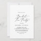 Esse delicado convite de festas de chá de noiva, caligrafia, é perfeito para um evento moderno. A design romântica minimalista apresenta uma magnífica e elegante tipografia negra num fundo branco com um aspecto simples e limpo.