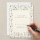 Esta elegante placa RSVP apresenta uma delicada fronteira floral com elementos botânicos desenhados à mão, criando um olhar encantador e inspirado na natureza. O simples, porém sofisticado design, com ilustrações negras sobre fundo creme, complementa perfeitamente casamentos com um tema rústico, jardim ou vintage. O texto minimalista no centro permite que os hóspedes respondam facilmente "aceitando alegremente" ou "lamentavelmente declina". Este cartão é perfeito para casais que procuram adicionar um toque de elegância do eterno e romance floral à sua suíte de papelaria de casamento.