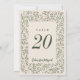 Número da tabela com folhas delicadas; texto editável e cor de fundo em ambos os lados, o texto será atualizado em conjunto. Título do evento opcional, adicione mais texto conforme desejado no editor. Personalize 1 cartão para cada número de tabela necessário, solicitando 1 cartão diferente para cada (ou seja, para vinte mesas você precisa de vinte pedidos separados personalizados com números de 1 a 20)