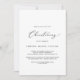 Este delicado convite batizante de caligrafia negra é perfeito para um belezinho moderno. A design romântica minimalista apresenta uma magnífica e elegante tipografia negra num fundo branco com um aspecto simples e limpo.