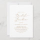 Este delicado convite para o almoço de caligrafia em ouro é perfeito para um chá de panela moderno. A design romântica minimalista apresenta uma magnífica e elegante tipografia amarela ouro champanhe num fundo branco com um aspecto simples e limpo.