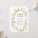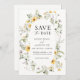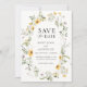 Casamento Salve a data com um quadro de flores silvestres amarelas da cor d'água. Personalize com suas informações. Clique em "clicar para personalizar mais" para alterar o estilo, o tamanho ou a cor da fonte. Coleção de correspondência disponível no compro Adore Paper Co no Zazzle.