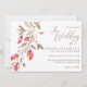 Convites de chá de panela de estilo rústico com uma ramificação de flores cor-de-água cor-de-rosa em flor e branco e padrão listrado de cinza nos servidores do cartão. Estes convites são perfeitos para um país, uma fazenda, uma festa de jardim, um quintal ou um chá de casamento de estilo. Esta design também está disponível para outros eventos. Para solicitação personalizada, entre em contato conosco através da loja