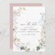 Isto salvou a data com flores silvestres boho delicadas e um rosa pincelado e empoeirado feminino. Adicione seu site de casamento às costas para que os convidados possam encontrar mais informações sobre seu evento de casamento boêmico.