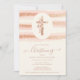 Rose Gold Glitter Delicate Floral Christian Cross Romantic Style Christening Invitation Cards.