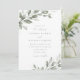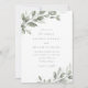 Convite de casamento Delicado Greenery. Folhas verdes simples e elegantes de aquarelas. Parte de uma coleção de casamento.