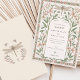 Este delicado convite para o casamento apresenta um encantador design Art Nouveau, adorado com uma libélula lindamente detalhada e motivos florais em tons de pastel suave de verde, rosa e creme. A frente do cartão destaca a intrincada trabalho de arte de libélula, cercada por elegantes padrões florais e formas orgânicas, criando uma atmosfera serena e sofisticada. O design de fronteira adiciona um toque de charme de vintage, perfeito para casais que buscam um tema de casamento inspirado na natureza e eterno. O verso do convite complementa a frente com uma design simplificada, mas encantadora, continuando o tema libélula e floral com a data do casamento mostrada de forma destacada. Esse convite é ideal para quem aprecia a elegância e a artista da era Art Nouveau.
