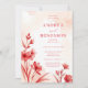 Delicate Romantic Bloom Juicy Red & Pinky Pink Editorial Wedding Invitation with Back QR Code.