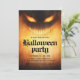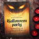 Convite para festas de Halloween com um demônio assustador com olhos brilhantes com o texto "Festa de Halloween" em letra de estilo gótico.