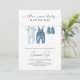 Comemore em estilo com este convite de chá de fraldas jean azul denim. Um design de moda e encantador que dá o tom perfeito para honrar seu pequeno com um encontro divertido e memorável.