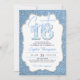 Um modelo simples, moderno, elegante e chique, denim e diamantes doce 16 com fundo denim leve e roteiro de caligrafia moderno, assim como um diamante aparado, elegante quadro. Um design de "denim e diamantes" chic para um aniversário de marcos.