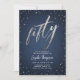 Um convite de 50º aniversário para mulheres, que é simples, moderno, elegante e chique, apresentando um fundo denim e uma propagação de rochas, a palavra FIFTY em folha de papel falso prateado (este é um efeito digital, não uma folha de papel real!) e em roteiros de caligrafia modernos e tipografia em fontes modernas. Uma design de chic, elegante e moderna para uma mulher no seu quinquagésimo aniversário.