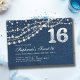 Um modelo moderno, elegante e elegante Doce 16 para raparigas com um fundo denim, cordas de pérolas e diamantes (estes são efeitos digitais) e tipografia moderna em branco pérola. Um design chic de "ouros e pérolas" para uma garota fazendo dezesseis anos, no seu décimo sexto aniversário que combina outro tema da moda: denim e diamantes. Uma escolha encantadora para um adolescente que gosta de denim, diamantes, pérolas, brilho e brilho, terra ocidental e elegância despretensiosa.