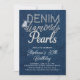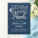 Um modelo convite de aniversário moderno, elegante e elegante para mulheres com um denim, diamantes e pérolas. Ele apresenta um fundo denim, caligrafia personalizada e tipografia. Um chic denim diamante e pérolas temeu festa de aniversário de modelo de convite para uma mulher de qualquer idade. Uma escolha encantadora para uma mulher que gosta de denim, diamantes, brilho e brilho, com um toque de pérolas.