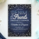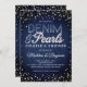 Convites Denim Diamantes Pérolas Azul Casal Moderno Chá
