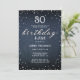 Um modelo simples, moderno, elegante e chic com fundo de denim azul, a palavra BIRTHDAY coberta em diamantes brancos (simulados, não em reais) e em roteiros de caligrafia modernos, e tipografia rústica em branco. Um design de "denim e diamantes" chico para uma mulher de qualquer idade, nos seus 21ruas, 30, 35º, 40º, 50º, 55º, 60º, 65º, 65º, 70, 80 ou 90!