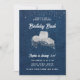 Um convite de festas rústico, moderno, elegante e chic com um tema de denim e diamantes. Apresenta um fundo denim, um chapéu branco de vaqueira com detalhes de rochas (este é um efeito digital) e tipografia em branco. Um design de "denim e diamantes" chico para uma mulher no seu trigésimo aniversário que ama botas de denim, country, ocidental, cowgirl e gritando por uma festa de vidro!
