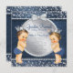 Denim e diamantes fazem convites para bebês com adoráveis filhotes e meninas vestindo roupas bonitinhas de denim e diamante com coroas em um lindo plano de denim e diamante. Você pode personalizar facilmente esses bonitos convites para chuveiros de denim e diamante e princesa para bebês, simplesmente adicionando seus detalhes no estilo de fonte de sua escolha. Este é um design impresso sem diamantes reais, brilho, joias, denim, etc.