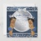 Convites de chá de bebê com jeans e diamantes com adorável menino e menina afro-americanos usando lindos trajes de jeans e diamante com coroas em um lindo fundo de jeans e diamantes. Você pode personalizar facilmente esses convites de chá de bebê do príncipe e da princesa com jeans e diamantes para o seu evento, simplesmente adicionando seus detalhes no estilo de fonte de sua escolha. Este é um design impresso sem diamantes reais, lantejoulas, jóias, jeans, etc.