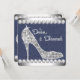 Diamante espumante Elegante de alto salto calçado denim azul e convites de festas de aniversários de diamantes. Este adorável convite de aniversário de denim e diamante é perfeito para uma doce festa de aniversário de dezesseis anos, Quinceanera, menina e mulher, qualquer convites de festas de aniversários de números, ou festa ou evento temático de denim e diamante. Adicione os seus detalhes à frente e/ou atrás adicionando os detalhes do evento, estilo da fonte, tamanho da fonte e cor e texto.