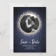 Elegante salve o cartão de data apresentando um plano de fundo denim com lindas pérolas que você pode personalizar com sua própria foto