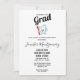 Um convite para a graduação com uma ilustração de um estilo de desenho animado, um grande dente branco sorrindo alegremente segurando uma escova de dente vermelha e dando aos polegares um sinal.