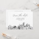 Moderno Denver preto e branco salve o convite de data. A frente mostra um desenho impressionante, dando o tom perfeito para o dia do seu casamento. Adicione sua própria foto ao verso e personalize o texto para torná-lo seu. Entre na ferramenta Zazzle design para personalizações adicionais do design.