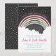 Adorável convite para chá de fraldas arco-íris.