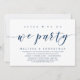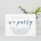 Tema moderno de classe azul-marinho, cartão de convite de casamento fugitivo (Depois que Nos Casamos, Nós Comemoramos). É perfeito para a sua celebração casual de casamento às margens de um lago.