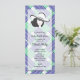 E ela vai para o altar! Uma senhora de seu chapéu Derby sobre um fundo de blocos diagonais azuis, verdes e brancos de listras é uma maneira divertida de convidar convidados para a futura festa do chá de panela Derby da noiva. CORRESPONDENTE a itens na nossa coleção.