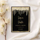 Este luxo minimalista negro e dourado brilha na fronteira Casamento Salve a data O convite é inspirado pelo simples e elegante foi, mas com sutis pistas de influência moderna. Ele apresenta um brilho dourado, gotejando a borda em um simples fundo preto. Este design clássico e de luxo será um grande sucesso para todos os seus convidados. Todas as designs são impressas.