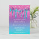 Um convite bonito para a fabulosa festa de festa de aniversário quincinera. O brilho e a película de folhas multicoloridas, em camadas, são cor-de-rosa cintilante, púrpura, e cintilantes aquosos contra um fundo verde brilhante, cor-de-rosa brilhante, lavanda roxa, azul, azul-céu e azul-turquesa. Personalize o estilo de fonte, o tamanho, o espaçamento e a cor elegantes, conforme necessário. Convites de festa de aniversário personalizáveis. Girly mermaid glam modernos convites para furar folhas de glitérico quic criados com gráficos de arte digitais. Todo o brilho, brilho e brilho são criados com efeitos digitais que impressão gostam de uma foto.