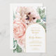 Este convite elegante de flores cor-de-rosa para brunch e champanhe é perfeito para o seu chá de brunch botânico cor-de-rosa boho. O design apresenta uma moldura com folha de ouro acompanhada por uma simples rosa de chá água-marinha, folhagem de eucalipto verde-sage minimalista e uma flor silvestre coral poppy neutra, moderna e única. O design é luxuoso, ideal para um casamento clássico, sofisticado e delicado no verão, outono ou inverno. Por favor, sinta-se à vontade para entrar em contato conosco com quaisquer perguntas sobre o design do produto; votos!