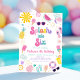 Este convite de aniversário para meninas apresenta ilustrações coloridas adoráveis de verão com sotaques falsos de folha de ouro.