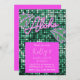 Especialize suas celebrações de solteiros de discoteca tropical com esses convites de neon rosa e verde quente! Perfeito para fins de semana e festas de despedida de praia.