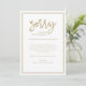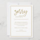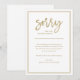 Este anúncio simples e elegante é uma forma de se desculpar com os clientes ou amigos quando você precisa cancelar, remarcar ou adiar um evento ou casamento. O visual moderno e dourado de letra manuscrita adiciona um toque estiloso, enquanto a moldura retangular dourada adiciona um visual formal e clássico. Use esses cartões de anúncio para qualquer cancelamento, adiamento ou reprogramação.