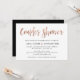 Este convite para chás de casamento de casal novo e moderno apresenta um roteiro de moda falso rosa dourado manuscrito e um visual chic, preto e branco com um fundo preto.