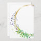 Este é um convite de casamento em branco para você personalizar; apresenta um spray floral, folhas e um traço circular dourado