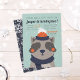 Brrr! Convites chiques para festas de aniversário de inverno para crianças apresentam um adorável guaxinim rosado vestido com um bonitinho chapéu de inverno e cachecol. "Venha se acalmar conosco" aparece no topo em marinho, em letras azuis, com seus detalhes de festas embaixo de uma legal mistura de marinhos e tons de laranja.